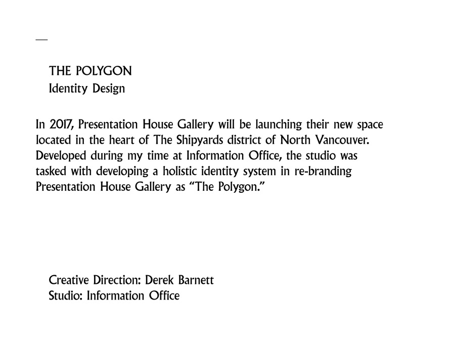 identity system in re-branding Presentation House Gallery as “The Polygon.”